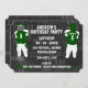 Si vous avez besoin d'une combinaison de couleurs différente contactez-nous via le lien de demander concepteur ci-dessous avant l'achat.Cette invitation unique de fête d'anniversaire comprend un football vert personnalisé Uniform Front et dos et un arrière - plan de tableau noir, . Le maillot est personnalisable avec vos propres numéros et nom, pour créer une invitation unique à la fête pour le jeune footballeur ou ventilateur en grille.