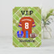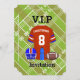 Jersey de football en fer personnalisé en rouge, blanc et bleu avec, casque de football, bouteille d'eau et football avec un arrière - plan de terrain de football. Peut être entièrement personnalisé avec le numéro et le nom de votre choix et les détails de l'événement pour créer une invitation unique pour vos invités V.I.P.