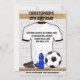 Une excellente invitation à la fête d'anniversaire pour le joueur de football ou le fan de football avec une chemise de football blanche et noire personnalisée accrochée dans le vestiaire sportif. Il suffit d'ajouter le nom et le numéro du garçon d'anniversaire ou de la fille d'anniversaire sur le devant pour les invitations uniques à la fête d'anniversaire. Le dos de l'invitation est entièrement personnalisable pour les détails de votre fête d'anniversaire.