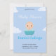 Celebrate the upcoming arrival of a baby boy with this charming and delightful baby shower invitation. Featuring a cute baby in a tub surrounded by fluffy clouds on a sky-blue background, this design sets the perfect tone for a joyful and memorable event. this invitation is a heartwarming way to gather family and friends to share in the happiness.