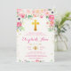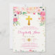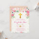 Cette invitation à la communion florale est ornée de touches dorées et de fleurs d'aquarelle qui sont arquées sur une croix d'or. Tous ensemble font l'invitation parfaite à votre belle célébration de la Communion!