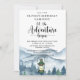 Laissez l'aventure commencer thème camping thème fête d'anniversaire week-end avec une aquarelle montagnes, forêt et lanterne. Un style à customiser pour les garçons ou les filles. Disponible en téléchargement numérique, en impression ou les deux.