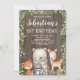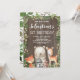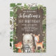 Invitation d'anniversaire fantastique illustrant l'illustration de greens rustiques d'aquarelles, de feuillages et d'adorables animaux de forêt : renard, cerf, ours, écureuil et raton laveur
