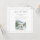 Cette aquarelle idyllique de forêt de lac de montagne pour save the date présente un quai serein au bord du lac encadré par des pins et des montagnes bleues lointaines, créée pour les couples qui planifient une destination inspirée par la nature ou un mariage à la montagne. Des tons d'aquarelle bleus et verts créent une atmosphère calme et romantique, tandis que la typographie classique garde le design raffiné et intemporel. Idéal pour les lieux de villas au bord du lac, les célébrations en forêt, les retraites à la montagne ou les cérémonies en plein air où la beauté naturelle fixe le ton. Coordonne parfaitement avec la suite d'invitation de mariage assortie. Disponible en version imprimée, en téléchargement numérique ou les deux.