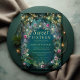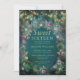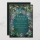 Une aquarelle fantaisie illustrant le feuillage luxuriant en vert émeraude, rose, fuchsia, mauve et violet, brillant avec des lumières féeriques et de la poussière magique, décore cet automne d'été Sweet 16 invitation avec un thème de forêt enchanté qui comprend également un cadre de roses délicats en rose, violet et mauve. Une invitation élégante et moderne pour un conte de fées seizième anniversaire. Parfait pour les filles et les familles qui aiment le cadre de la forêt de contes de fées, la forêt de fées ou le thème du jardin de fées et vert émeraude, mauve et or.