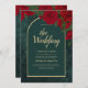Invitation Forêt Vert Or ROUGE Roses Mariage d'hiver