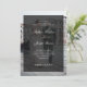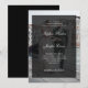 These sophisticated and modern wedding invitations feature your own personal photo covering the background completely. A sheer, dark overlay contains formal script calligraphy and classic white text, while the back of the invitation is solid black. An updated contemporary spin on a traditional, elegant layout.