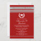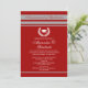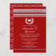 Rouge et gris... Bandes formelles dans votre choix de couleurs scolaires. Couronne de laurier avec logo de panneau de mortier à capuchon de graduation. Faire-part personnalisée classique et classique simple, simple et personnalisée, avec des rayures arrière - plans et horizontales de couleur. Le casquette de grade et le motif de crête sont répétés au dos de la carte. Un souvenir classique et intemporel, personnalisable pour convenir à la journée spéciale de votre garçon ou de votre fille diplômé. Ajoutez de l'information sur la cérémonie de début, la fête à domicile, la réception ou tout détail que vous désirez.