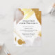 Un design polyvalent et facile à personnaliser présentant des formes abstraites scintillantes en or et en rose ivoire pastel qui comporte des taches de faux or et des paillettes dispersées dessus. Un coup de pinceau vibrant de faux or à l'aquarelle apparaît le long du bord supérieur et une ligne géométrique le long du bas. Ces invitations modernes, tendance et contemporaines sont idéales pour les étapes importantes ou les fêtes d'anniversaire de tout âge ; les événements de cocktail, de fiançailles, de mariage et de dîner.