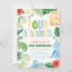 Make your little dino-lover's 4th birthday roar-some with our Four A-Saurus Dino Invitation! Featuring colorful dinosaurs and a fun design, this invite is perfect for your little one's special day.