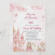 Set the stage for a magical celebration with this stunning 5x7 invitation card, perfectly designed for a 4th birthday milestone. The card features a beautiful watercolor fairy tale castle in soft pink tones, accompanied by a whimsical unicorn, a charming princess, and an elegant golden carriage. Surrounded by soft pink clouds and delicate butterflies, this design captures the true essence of a royal enchanted kingdom.