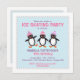 Un assez peu de trio de patin de glace de pingouins sur un étang minuscule sur un fond neigeux de bleu glacial, invitant vos invités à une fête d'anniversaire orientée de patinage de glace d'amusement. Avec les casquettes de laine mignons dans rose et pourpre, cette conception est parfaite pour n'importe quelle fille d'anniversaire !