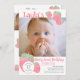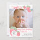 Berry Sweet Strawberry invitation photo anniversaire pour le 1er anniversaire bébé ou n'importe quel âge. Fraises d'aquarelle douce et festive dans les tons rose et vert avec texte rose blanc.
