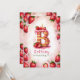 Célébrez un anniversaire spécial avec cette délicieuse invitation à gâteau à la fraise "B"! Cette charmante aquarelle présente un gâteau amusant et festif en forme de lettre "B" ornée de fraises fraîches, de givrage rose et d'une bougie d'anniversaire éclatante. L'arrière - plan rose doux aux fraises éparpillées apporte une touche ludique. Personnalisez-vous avec le nom, l’âge et les détails de la fête de votre enfant pour une célébration d’anniversaire unique sur le thème de la fraise. Parfait pour les enfants qui aiment les fêtes à thème ou les anniversaires d'été !