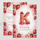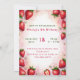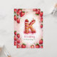 Célébrez un anniversaire spécial avec cette délicieuse invitation à gâteau "K" à la fraise! Cette charmante aquarelle présente un gâteau amusant et festif en forme de lettre "K" ornée de fraises fraîches, de givrage rose et d'une bougie d'anniversaire éclatante. L'arrière - plan rose doux aux fraises éparpillées apporte une touche ludique. Personnalisez-vous avec le nom, l’âge et les détails de la fête de votre enfant pour une célébration d’anniversaire unique sur le thème de la fraise. Parfait pour les enfants qui aiment les fêtes à thème ou les anniversaires d'été !
