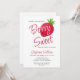 Prévoyez-vous un baby shower ? Cette jolie invitation à baby shower à thème fraise est décorée avec une simple fraise d'aquarelle rouge et il dit Berry Sweet dans une élégante typographie de script. Facile à personnaliser. Aquarelle originale © Michele Davies.