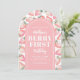 Un Berry mignon et girly Premier design en arc de 1er anniversaire avec un motif de fraise rose aquarelle avec feuilles verts. L'avant présente une arche rose vif avec un mélange de typographie manuscrite blanche, une police serif audacieuse et une police simple pour un look charmant et ludique. Entièrement personnalisable, vous pouvez modifier les couleurs de police, la couleur arrière - plan, et même ajuster la couleur de l'arc pour s'adapter à votre thème. L'arrière dispose d'une conception de coordination avec bandes optionnelles, qui peut également être customisé. Parfait pour être utilisé comme signe de fête, menu ou élément décoratif lors d'une fête de Berry Premier anniversaire! Idéal pour le printemps, l’été ou toute saison pour ajouter une touche sucrée et festive à la journée spéciale de votre petit.