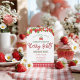 Vous êtes invité à une fête de premier anniversaire de la baie ! Cette jolie invitation à thème fraise est parfaite pour votre événement !