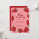 Jetez une fête douce avec des invitations personnalisés. Avec leurs illustrations de fraises rouges mûres, ces invitations de fête ont l'air presque assez bon pour manger. Les graphiques fraises sont positionnés contre un joli arrière - plan rose avec votre texte personnalisé pour coordonner les lettres rouges foncées.