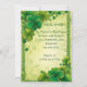 De grands shamrocks verts se regroupent autour d'un cadre de noeuds celtes sur cette belle invitation de fête de la Saint Patrick. Le dos est vert foncé.