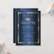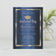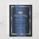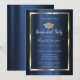 Invitation Frame Gold Grad Cap Navy Blue Metallic