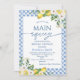Frame Jaune Floral Lemon Thème nuptiale Invitation Elle a trouvé sa principale invitation à la douche nuptiale pressée avec quelques fleurs jaunes et blanches, des citrons et des arrangements de feuillage et une bordure en tuiles bleues méditerranéennes. Idéal pour une douche nuptiale de printemps ou d'été.