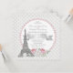 Faire-part de mariage parisien avec de belles perles roses roses roses et roses blanches antiques et la Tour Eiffel sur un élégant arrière - plan damassé. Vous pouvez facilement customiser ces belles invitations de mariage de France Country Paris pour votre événement en ajoutant simplement vos détails dans le style de police et le libellé de votre choix. Il s'agit d'un dessin imprimé sans perles réelles.