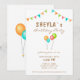 Ballons colorés modernes et mignons et drapeaux de bunting invitation fête d'anniversaire pour enfants. Le design a des ballons de fête d'anniversaire et des drapeaux de bottes en rouge, orange, bleu et vert. Le texte est de la typographie moderne - personnalisez cette invitation d'anniversaire avec vos données et faites votre propre carte d'anniversaire. Idéal pour les enfants, garçons ou filles.