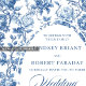 Invitation French Toile de Jouy Blue Roses Elegant Wedding