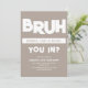 Il n'est pas surprenant que planifier une fête pour votre fils adolescent puisse être une tâche décourageante. Trouver le lieu parfait, envoyer les invitations, il y a tant de choses à considérer. Lorsqu'il s'agit d'invitations, une invitation générique achetée en magasin ne fera tout simplement pas l'affaire pour une journée spéciale comme son anniversaire. Vous voulez quelque chose d'unique qui reflète la personnalité de votre fils. C'est pourquoi ces invitations d'anniversaire pour adolescents BRUH sont la solution parfaite.