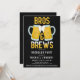 Cette invitation de mariage pour enterrement de vie de garçon cool et drôle est parfaite pour les garçons. Elle comporte des verres à bière peints à la main jaune, blanc et bleu qui s'entrechoquent avec la phrase "Bros and Brews", sur un fond à motif abstrait noir. C'est moderne, viril et amusant; le design parfait pour vos potes.
