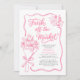 Delicate light pink florals, hand-drawn line art, and graceful script typography create a timeless European aesthetic that feels both refined and effortlessly playful. The bouquet illustration symbolizes love in full bloom — beautifully wrapped, carefully chosen, and ready to be celebrated.