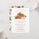 Invitation au dîner Friendsgiving de citrouille. Cette mignonne invitation de dîner de citrouille d'automne présente de belles aquarelles orange brûlé et des citrouilles blanches et des fleurs automnales avec un motif floral assorti au verso. Personnalisez facilement de Dîner Friendsgiving à Fête de Thanksgiving.