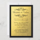 Un faire-part de mariage 5x7 élégant et chic comportant le noir s'épanouit sur un arrière - plan de feuille d'or de faux, décrit avec une frontière noire épaisse. Cliquez sur la PERSONNALISER IL bouton pour ajouter votre texte. Venez dans 5 couleurs. Cartes assorties de table, RSVPs, serviettes de cocktail et plus disponible. Pour des questions ou des demandes d'autres articles comportant cette conception, entrez en contact svp : cheryl@cheryldanielsart.com. "Flourish tourbillonnant avec la vue" par le © 2015 de Cheryl Daniels.