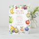 Faites de votre petit un extra sucré de deuxième anniversaire avec cet adorable Frutti à deux tti Invitation de fête de 2e anniversaire avec de mignons personnages de fruits aquarelles! Parfait pour un thème d'anniversaire tutti frutti, ce design coloré et gai comprend des bananes heureuses, des pommes, des avocats, des cerises, des bleuets, etc., tous vêtus d'un casquette de fête et prêts à célébrer. Cette invitation fruitée à l'anniversaire est idéale pour une fête de 2ème anniversaire de fille, une fête d'été sur le thème des fruits, ou un bain d'anniversaire de bébé. Les oeuvres d'art ludiques et ludiques et les illustrations de fruits pastel raviront vos invités et donneront le ton pour un événement festif et amusant.