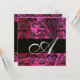 Invitation FUCHSIA BLACK SILK DAMASK MONOGRAM, Glace blanche