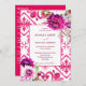 Fuchsia Méditerranée Majolica tuiles magenta fuchsia thème couleur modèle, style italien Capri, Côte Amalfi, Sicilia invitation de mariage avec magenta rose blanc dahlias et boho vert, le tout dans une invitation avec détails mariages et qr rsvp à l'arrière, si qr pas nécessaire - supprimer ces champs du menu déroulant