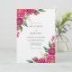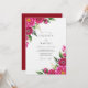 Vibrant fuchsia blossoms and delicate greenery artfully accent this design. The rich, painterly style evokes a sense of dramatic romance, perfect for a sophisticated affair. Lush roses and hints of ranunculus create a striking visual.