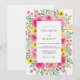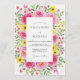 Vibrant fuchsia roses and cheerful yellow blossoms create a lively botanical composition. This design evokes a joyful and romantic atmosphere with its abundant floral elements. The rich green foliage complements the bright blooms.