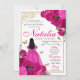 Fuchsia Rose & Or Floral Quinceanera Invitation Anniversaire
