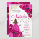 Fuchsia Rose & Or Floral Quinceanera Invitation Anniversaire