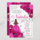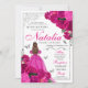 Fuchsia Pink & Silver Floral Quinceanera Invitation Anniversaire