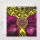 INVITATION FUCHSIA RIBBON OR JAUNE BLACK DAMASK MONOGRAM