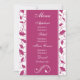 Ce menu personnalisé de réception de mariage est incontournable si vous prévoyez de dîner à la réception. Ce menu personnalisé présente un design floral rose fuchsia sur un arrière - plan blanc et fuschia. Nous proposons également ce menu mariage en version plus étroite.