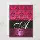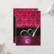 Invitation FUCHSIA ROSE NOIR DAMAS MONOGRAMME ,blanc éclata
