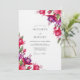 A vibrant watercolor design features fuchsia and magenta blooms with lush green foliage. The artistic floral arrangement creates a lively yet elegant mood for a special occasion.