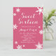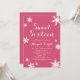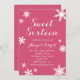 Un parfum de flocons de neige décore cette joyeuse invitation à la fête du Sweet sixteen, sur un arrière - plan rose vif. Si d'autres éléments de coordination sont nécessaires pour votre événement, contactez-nous à prettyfancyinvites@gmail.com avec votre demande.
