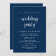 Belle écriture moderne et décontractée, en police de caractères bleue marine, Annonce de mariage en fuite, carte d'invitation (C'est une soirée d'après-mariage). C'est parfait pour votre réception de mariage et votre soirée de célébration post-mariage. Ajoutez vos détails dans la police / lettrage correspondant.