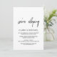 Cette carte de fuite de calligraphie fantaisiste est parfaite pour une fête d'après-fuite élégante. Le design présente une typographie élégante mais rustique pour un look minimal simple. Sélectionnez du papier kraft pour un look plus rustique. Les cartes RSVP sont vendues séparément.