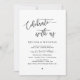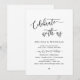C'est la calligraphie noire romantique moderne, carte d'invitation de fuite de mariage (Célébrez avec nous). Une carte parfaite pour inviter votre famille et vos invités à votre annonce de mariage, et célébration de réception. Ajoutez vos détails de célébration dans la police / lettrage correspondant.